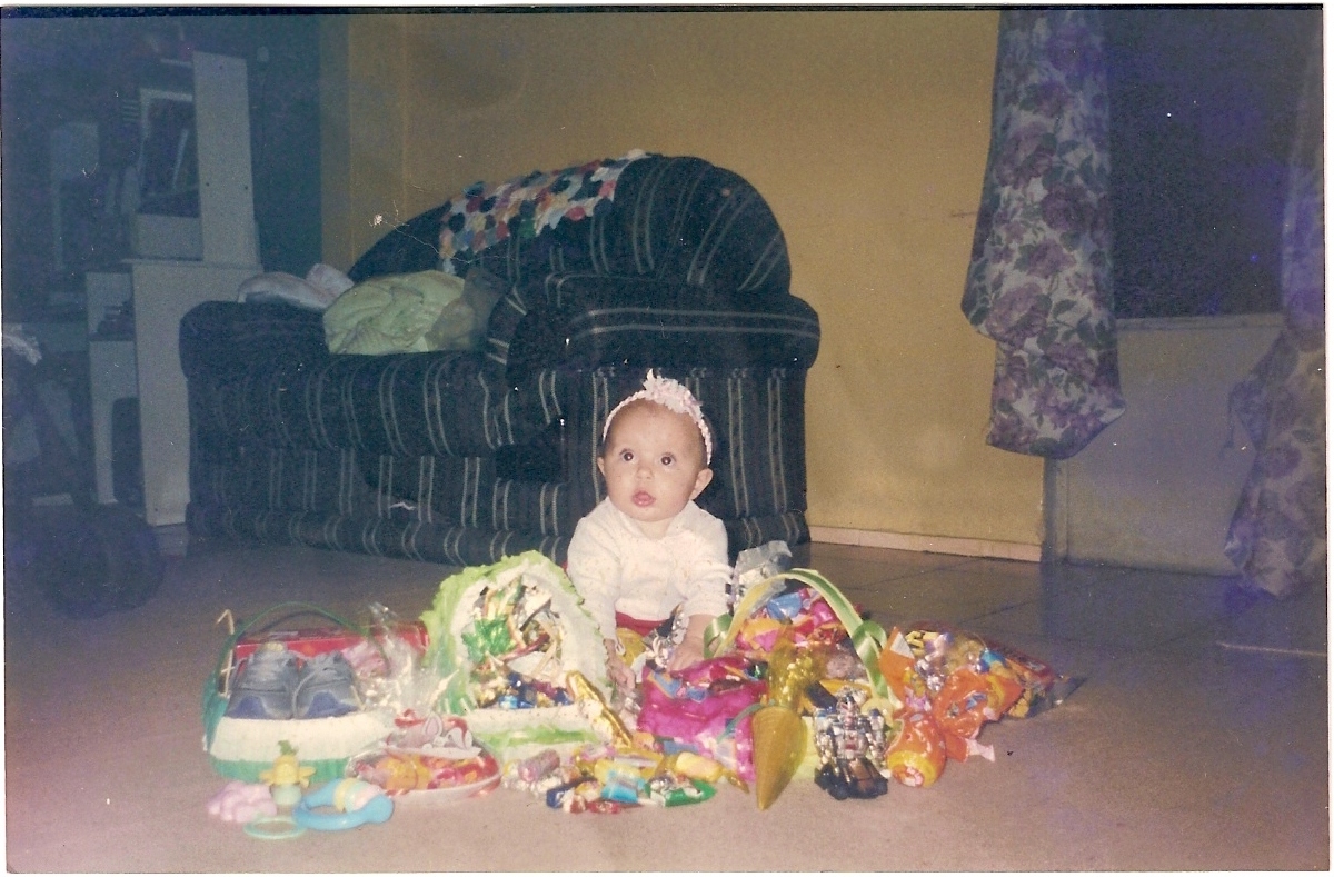 E agora eu vou colar uma fotinho muito linda de quando eu era mais pequenininha. Este montão de doce sim era gostoso, pois foi o coelhinho que trouxe. Bem, eu não me lembro muito dele trazendo, mas foi a minha mãe que contou. Até que enfim ela falou a verdade sobre alguma coisa!