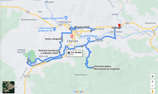 Rota pelo Google Maps: Rota da Malha e Turismo em Jaraguá do Sul