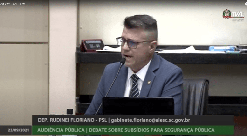 Imagem: print durante a fala do Deputado Rudinei Floriano