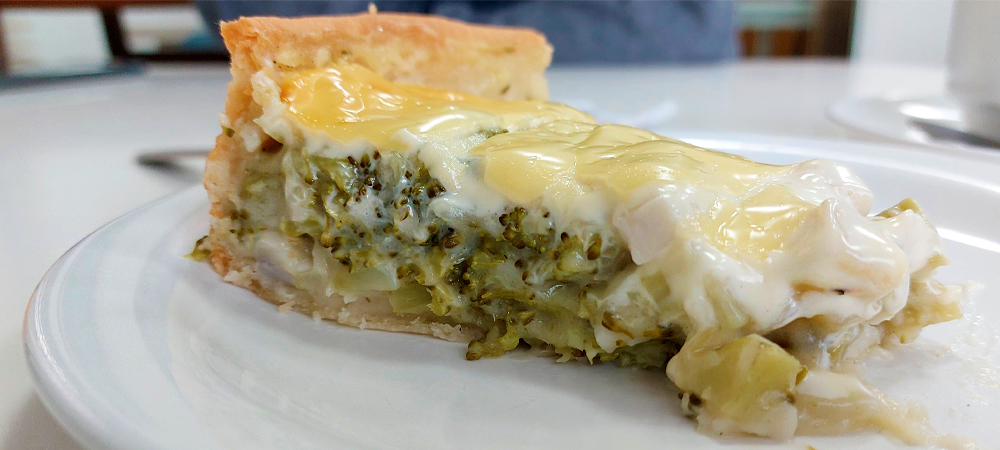 É uma escolha difícil, mas se tivesse que escolher entre doce e salgado, hoje, pelo clima um tanto frio e chuvoso de Jaraguá do Sul, certamente a torta de brócolis e palmito venceria, pois recém havia saído do forno, e com a xícara de café com leite sem açúcar então, simplesmente perfeito.