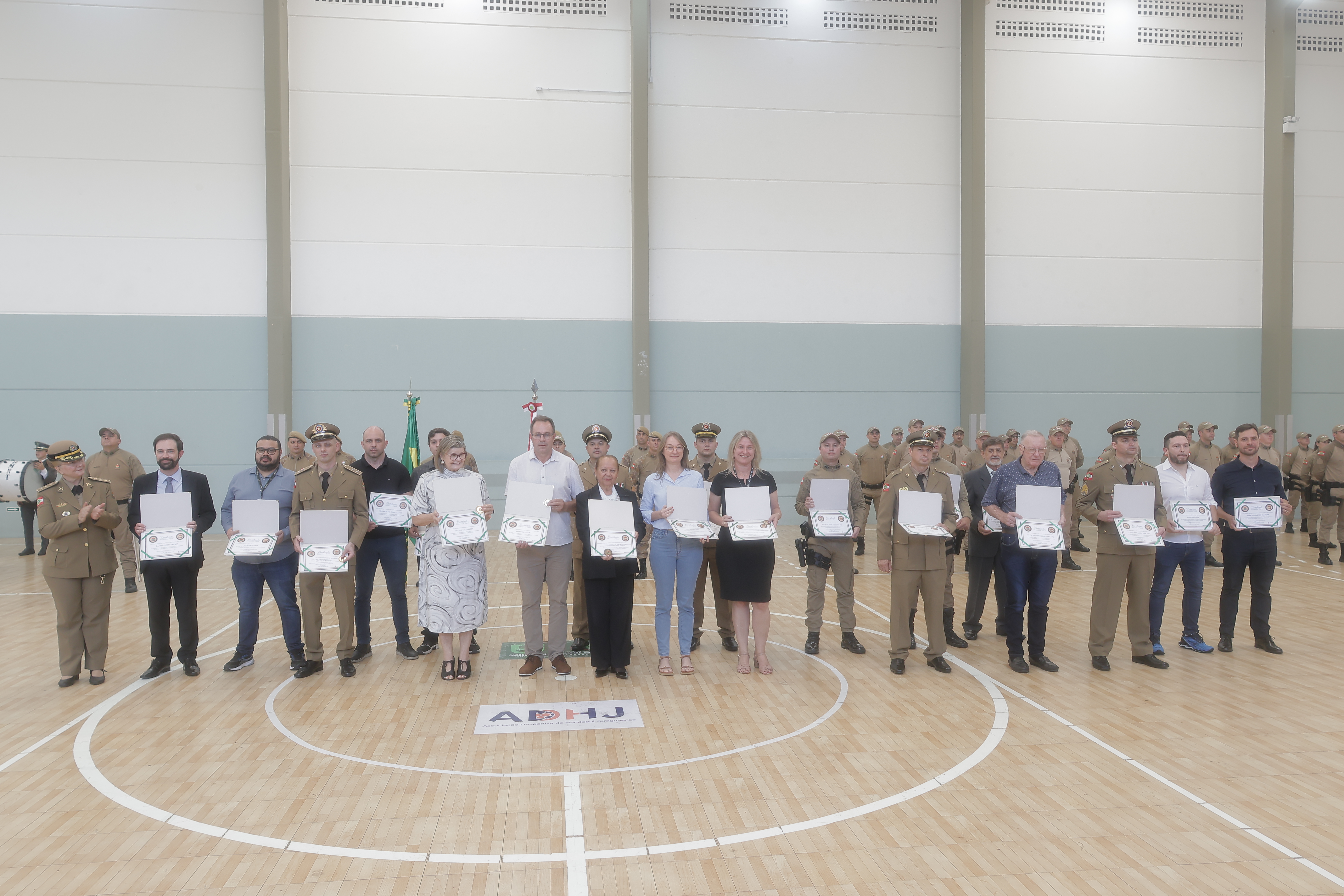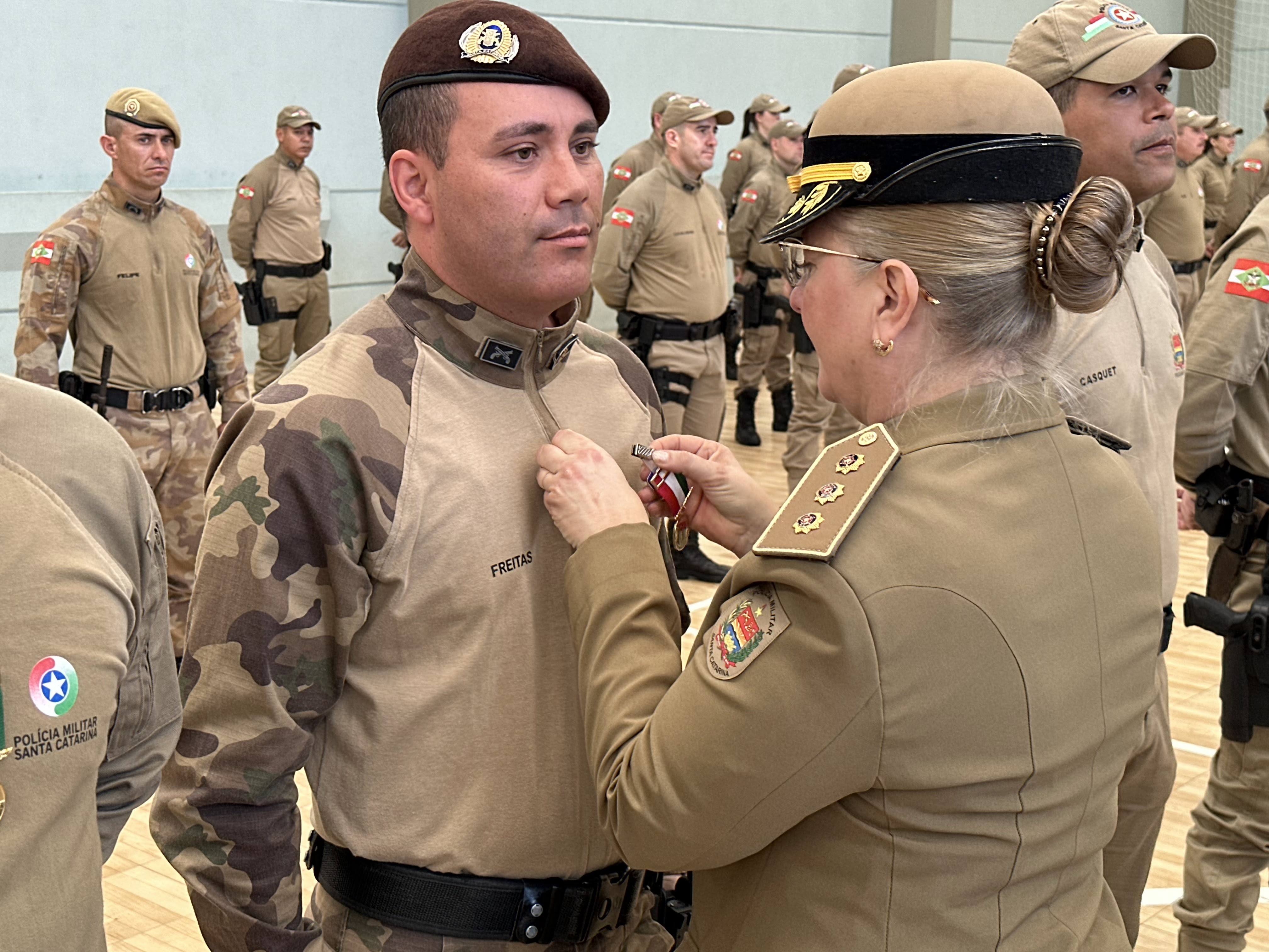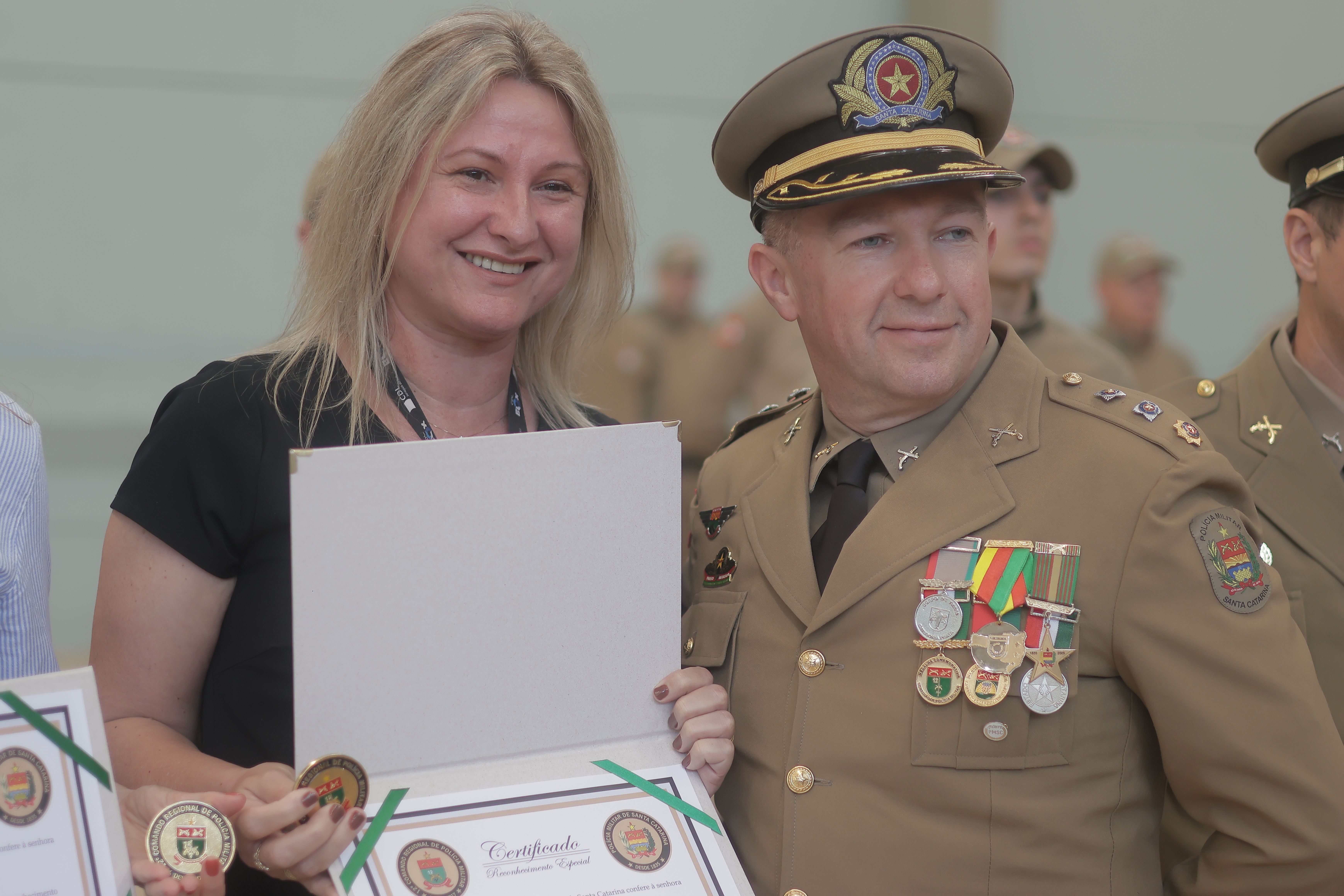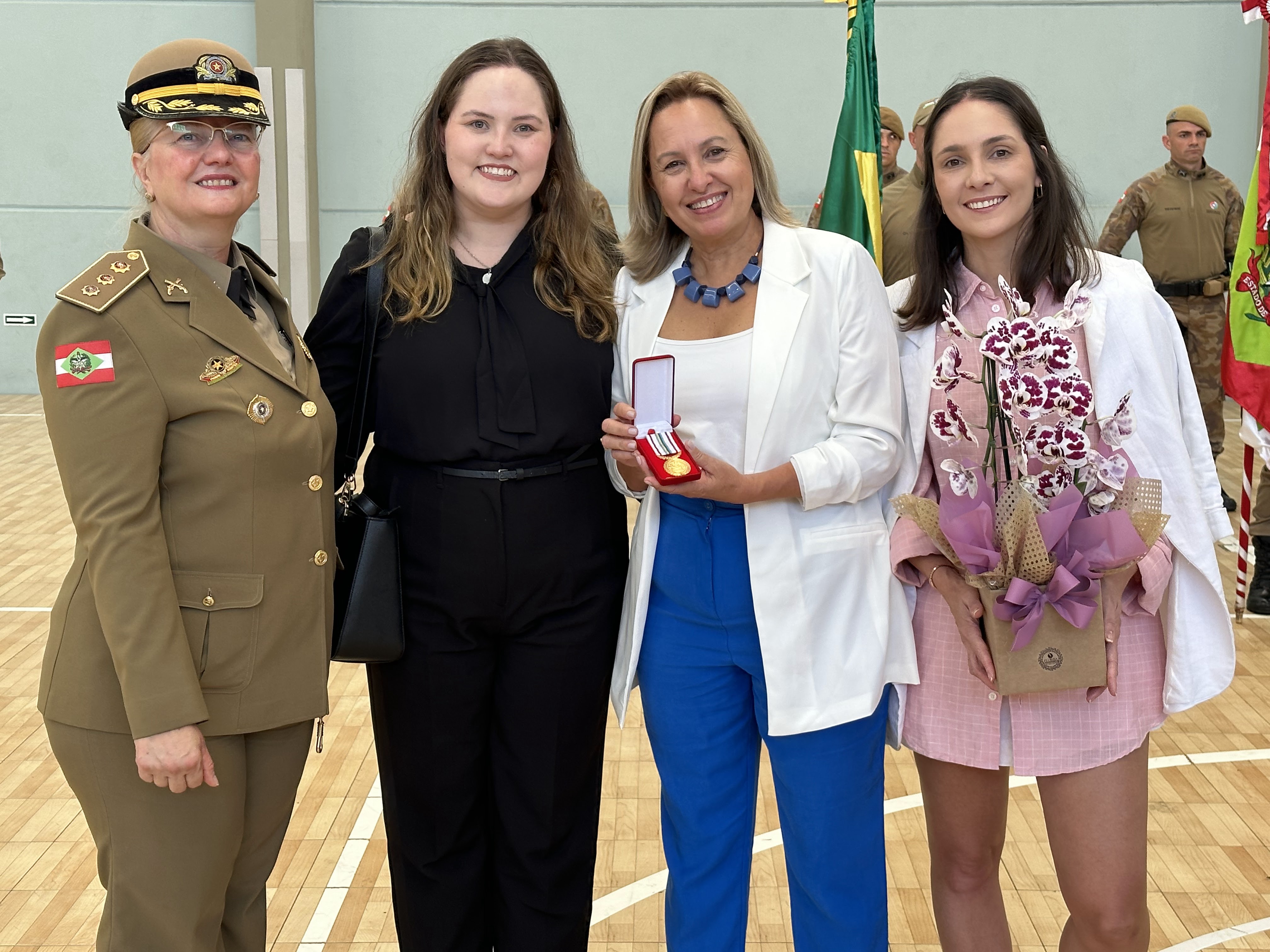 Ainda, como forma de homenagear policiais militares e autoridades, foram entregues 18 Medalhas Comemorativas, em que a comandante regional afixou solenemente em cada agraciado, dentre eles praças e oficiais, além de autoridades civis, como o prefeito de Jaraguá do Sul, Jair Franzner, e o deputado estadual Vicente Augusto Caropreso.