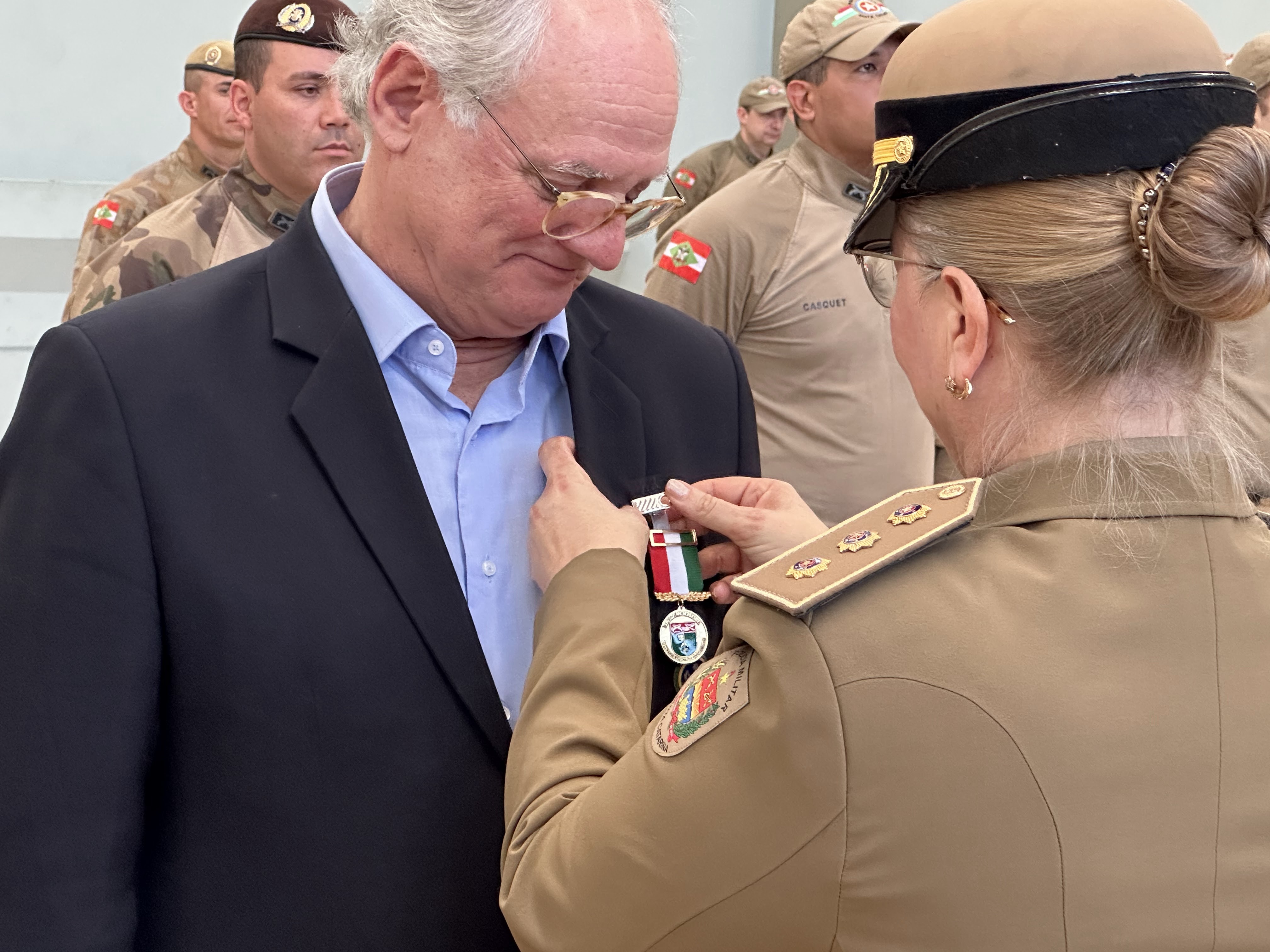 Se ser agraciado com a Medalha Comemorativa já é motivo de orgulho, imagine a alegria do prefeito de Jaraguá do Sul, que também recebeu o Título de Amigo da Polícia Militar de Santa Catarina, que é concedido pelo comandante-geral da corporação. De toda a regional, o chefe do executivo jaraguaense foi o único a receber nesta solenidade, dando um brilho ainda mais singular à honraria.