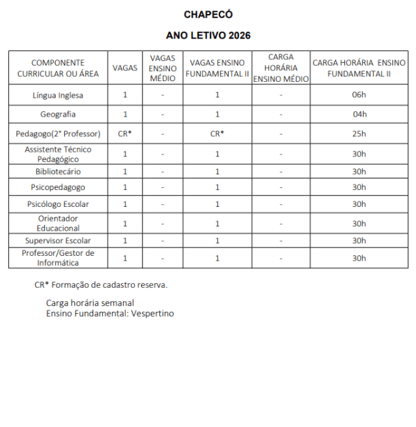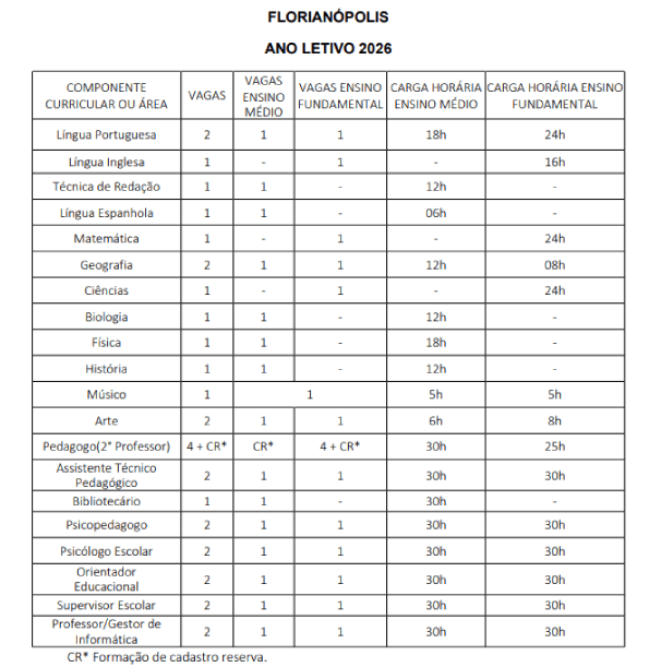 A Polícia Militar de Santa Catarina publicou edital que prevê a contratação em caráter temporário de 148 profissionais da área da educação para o ano letivo de 2026 (podendo ser prorrogado por mais um ano).